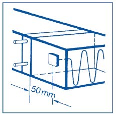 在換熱器和傳感器之間的最小距離應(yīng)為50mm