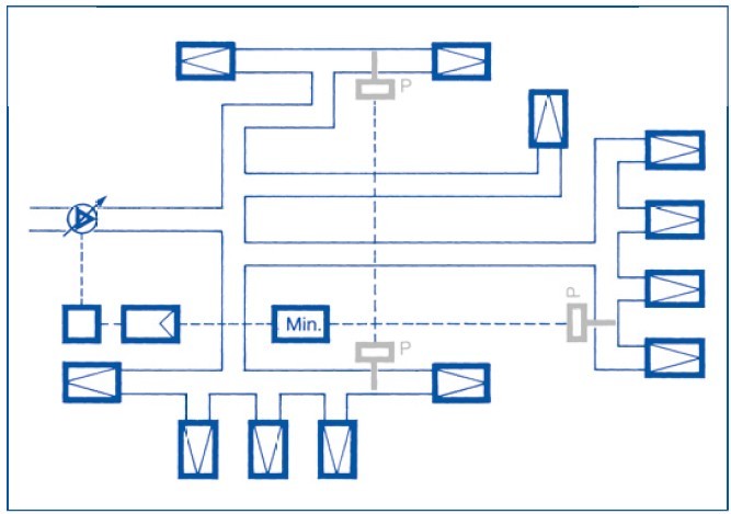 這種布置應(yīng)該用于大管徑的系統(tǒng)以及變流量系統(tǒng)中。