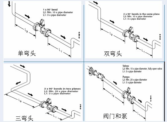 流量計安裝時必須、保證直管段(前、后)!如下圖
