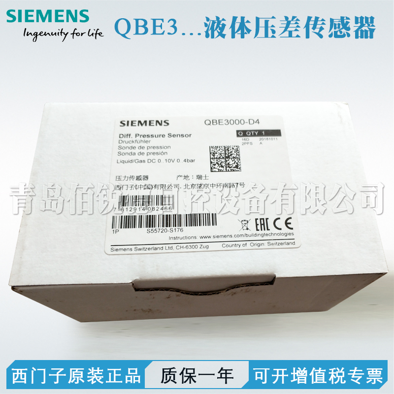 | 西門子壓差傳感器 | QBE3000-D4 | 液體,0-4ar,電源AC24V DC 18...33 V,輸出DC 0...10 V, G?" |