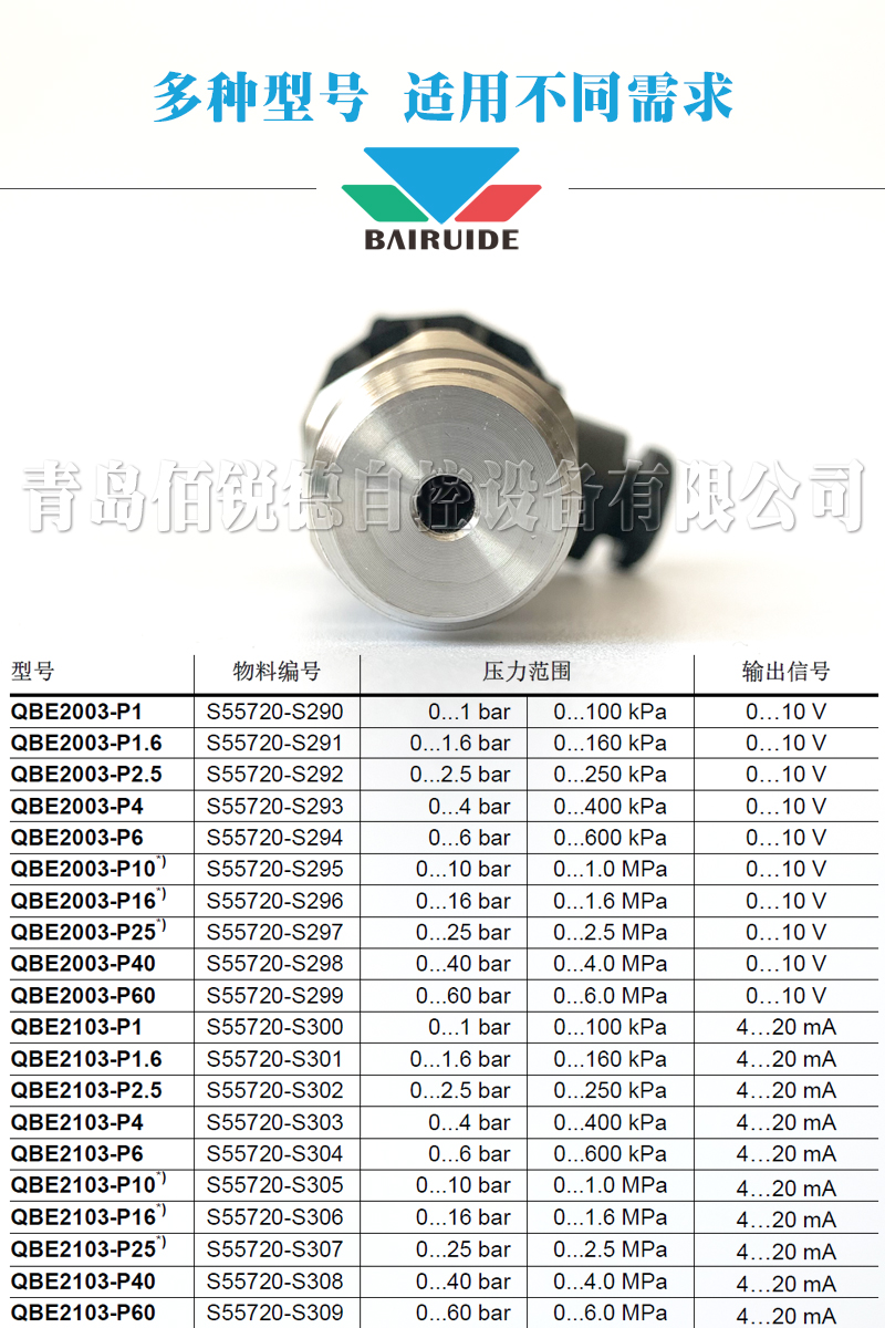 QBE2003-P60 | 0-10V | 0...60Bar | ±0.3% | IP65 | -15..125o | AC/DC24V | 3線 |